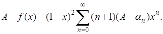 для 0< x<1. Выполнив дважды преобразование Абеля, последовательно получим