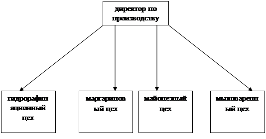 Рис. 2.1. Организационная структура ЗАО «Рабочий» Производственная структура предприятия построена по линейному принципу. ЗАО «Рабочий» имеет следующую производственную базу: · гидрорафинационный цех – в данном цехе происходит очистка растительного масла путем гидрорафинации масел и жиров; · маргариновый цех – цех выпускает маргарин и подсолнечное масло «Аведовъ» и «Щедрое лето»; · майонезный цех – производит майонез нескольких наименований «Провансаль», «Провансаль-Домашний», «Провансаль-Южный», «Провансаль-Прима», «Провансаль-Дачный» и соус-кетчуп томатный слабо-острый «Щедрое лето»; · мыловаренный цех – выпускает более 10 наименований хозяйственного и туалетного мыла: в том числе «Детское», «Чебурашка», «Зайка», «Ординарное»; На рис. 2.2 представлена производственная структура предприятия.