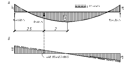 Рис 7 – а. эпюра изгибающих моментов в ригеле с учетом влияния затяжки; б. Эпюра перерезывающих сил с учетом затяжки. 1.10 Проверка прочности ригеля наклонным сечениям 1. На приопорном участке