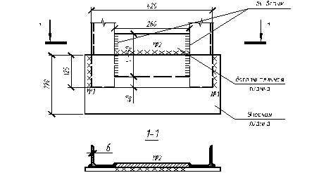 При создании предварительного напряжения 4 уголка разгружают железобетонную колонну на величину: N= (σp – σп )2Аp = (134.8 - 50)10-3 ·2·18.76·10-4 = 318.2кН. 2.6. Расчет сварных швов крепления планок-упоров к уголкам распорок Толщина упорных планок принимается равной 15мм. Из условия полного использования прочности сечения уголка на сварные швы передается усилие. Nш = Ry Ay = 220·9.38·10-1 = 206.4 кН. Так как из условия размещения сварных швов ширины d=25см упорных планок оказалось недостаточной, принимаем d=30см. Усилие Nш с уголка и с дополнительной планки, приваренной в плоскости полки уголка, передается на упорную планку через угловые швы №1 и №2. Суммарная длина угловых сварных швов №1 и №2: