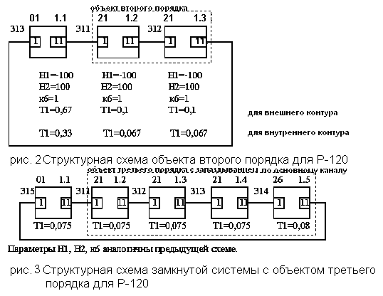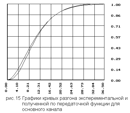 5. Аппроксимация методом Симою. С помощью программы ASR в пункту аппроксимации последовательно считаем площади каждой из кривой разгона для последующего получения уравнения передаточной функции. Для кривой разгона по внешнему контуру для объекта второго порядка получаем следующие данные: Значения площадей: F1= 6.5614 F2= 11.4658 F3= -4.5969 F4= -1.1636 F5= 44.0285 F6= -120.0300 Ограничимся второй площадью. F1<F2, а F3 отрицательная. Следовательно для определения передаточной функции необходимо решить систему уравнений: a1 = F1 + b1 a2 = F2 + b2 + b1 F2 a3 = F3 + b3 + b2 F1 + b1 F2 a1 = 6.5614 + b1 a2 = 11.4658 + b1 6.5614 0 = - 4.5969 + b1 11.4658 Решив систему получаем : b1 = 0.4 a1 = 6.9614 a2 = 14.0904 Тогда передаточная функция объекта второго порядка по внешнему контуру имеет вид: 0.4 s W(s)=----------------------------- 2 14.0904 s + 6.9614 s + 1 Для кривой разгона по внутреннему контуру для объекта второго порядка получаем следующие данные: Значения площадей: F1= 9.5539 F2= 24.2986 F3= -16.7348 F4= -14.7318 F5= 329.7583 F6= -1179.3989 Для определения передаточной функции решаем систему, так как F3<0. a1 = 9.5539 + b1 a2 = 24.2986 + 9.5539 b2 0 = -16.7348 + b1 24.2986 Решив систему получаем : b1 = 0.6887 a1 = 10.2426 a2 = 30.8783 Тогда передаточная функция объекта второго порядка по внутреннему контуру имеет вид: 0.6887 s + 1 W(s) = ----------------------------- 2 30.8783s + 10.2426 s + 1 Для кривой разгона по заданию для объкта третьего порядка с запаздыванием получаем следующие данные: Значения площадей: F1= 10.6679 F2= 38.1160 F3= 30.4228 F4= -46.5445 F5= 168.8606 F6= -33.3020 Так как F3<F2 и положительна, то ограничиваемся второй площадью и передаточная объекта третьего порядка по управлению имеет вид: 1 W(s) =------------------------------- 2 38.1160 s + 10.6679 s + 1 6. Проверка аппроксимации методом Рунге - Кутта. В программе ASR в пункте передаточная функция задаем полученные передаточные функции. И затем строим графики экспериментальной и аналитической кривых разгона (по полученной передаточной функции). 6.1 Для кривой разгона по внешнему контуру Устанавливаем для проверки методом Рунге-Кутта конечное время 27c, шаг 0,5с.