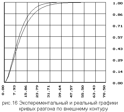 2.2 Координаты и график кривой разгона для внутреннего канала табл.2.2