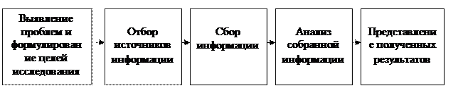 Рис.2 . Схема маркетингового исследования2.2 Методы проведения маркетинговых исследованийИтак, методы маркетинговых исследований в первую очередь делятся на методы сбора первичных и методы сбора вторичных данных. Вторичные данные — информация, собранная когда-либо для каких-либо целей, не связанных с текущей задачей. Иными словами, вторичная информация — это те данные, которые уже были собраны (Вами или кем-то другим) для решения других задач, но которые можно частично использовать и для разрешения стоящей перед Вами в настоящий момент проблемы. Основные достоинства вторичной информации — она дешево стоит, и доступ к ней можно получить сравнительно легко и быстро. Основные недостатки связаны с тем, что вторичная информация собиралась для решения другой проблемы. Соответственно, она, скорее всего, будет а) устаревшей, б) неполной, в) не иметь прямого отношения к решаемой проблеме, г) ненадежной (особенно это относится к российским источникам вторичной информации, в которых порой значения одного и того же параметра в разных источниках различаются чуть ли не на порядок). Перейдем к методам сбора вторичной информации. Для того чтобы получить обзор вторичной информации, необходимо: · определить возможные источники необходимой Вам информации. Эта информация может содержаться как во внутренних, так и во внешних источниках. К внутренним источникам информации относятся внутренние отчеты Вашей компании, беседы с сотрудниками, отчеты о продажах, бухгалтерские и финансовые отчеты, жалобы и предложения потребителей и т. п. Внешние источники информации — это средства массовой информации, выпускаемые различными организациями бюллетени, публикации исследовательских и консалтинговых фирм, статистические сборники; масса ценной информации находится в сети Internet — тематические и отраслевые сайты, сайты конкурирующих компаний. · Изучить все выбранные источники информации, проанализировать их содержание и выбрать нужную Вам информацию. · Подготовить итоговый отчет Первичные данные — информация, собранная исследователем специально для решения конкретной проблемы. Чаще всего под проведением маркетингового исследования понимают именно сбор первичной информации. Методы сбора первичных данных, в свою очередь, делятся на методы сбора качественных данных, методы сбора количественных данных и так называемые mix-методики. Качественное исследование отвечает на вопросы «как» и «почему». Данный тип исследований позволяет получить очень подробные данные о поведении, мнении, взглядах, отношениях очень небольшой группы лиц. Полученные данные не могут быть выражены количественно (за редким исключением), однако дают хорошее представление об образе мыслей потребителей. Качественные исследования незаменимы при разработке новых товаров, рекламных кампаний, изучении имиджа фирм, торговых марок и решении других сходных задач. Основные методы качественных исследований: фокус-группы, глубинные интервью, анализ протокола. Количественное исследование отвечает на вопросы «кто» и «сколько». Данный тип исследований, в отличие от качественного, позволяет получить выраженную количественно информацию по ограниченному кругу проблем, но от большого числа людей, что позволяет обрабатывать ее статистическими методами и распространять результаты на в