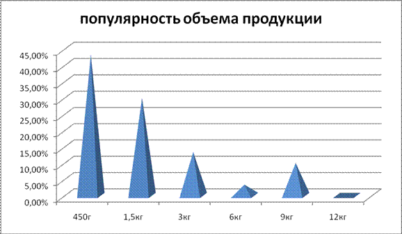 Сейчас на рынке синтетических моющих средств представлен большой выбор не только марок, но расфасовки. Большие и маленькие: 450г., 900г., 1,3 кг., 1,5 кг., 1,8 кг., 2,4 кг., 3 кг., 4,5 кг., 6 кг., 9 кг., 12 кг., - покупай столько, сколько унесешь. А каков же оптимальный вес стирального порошка для респондентов? Какого объема упаковку стирального порошка приобретают покупателя за 1раз? 450г. пачку приобретают 43,3% опрашиваемых, 1,5 кг. – 30%, 3 кг. – 13,3%, 6 кг – 3,3%, 9кг. – 10% (см.рис. 4). Рисунок 4 Для 46,7% респондентов цена имеют большее значение, чем дизайн, расфасовка или известность марки. Когда для 6,7% респондентов важнейшую роль играет дизайн упаковки стирального порошка, для 16,7% - расфасовка, а для 30% - известность марки.(см.рис.5) Рисунок 5