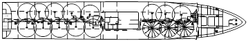 Величина к зависит от рода горящего вещества, свойств огнетушащей среды, а также от их расходов и скорости подачи. Вследствие токсичности огнетушащих сред системы необходимо оборудовать сигнализацией предупреждения, чтобы люди могли вовремя покинуть помещение. Системы парового пожаротушения используют в грузовых трюмах сухогрузных и наливных судов, в угольных бункерах, топливных и масляных цистернах, коффердамах, грузовых насосных отделениях, в фонарных, малярных, кладовых и аналогичных помещениях, а также для тушения отдельных очагов пожара в закрытых помещениях. Огнетушащей средой системы является водяной насыщенный пар под давлением от 5 до 10 кгс/см2, который подают в охраняемое помещение с интенсивностью не менее 1,33 кгс/ч на 1 м3. Пар для системы паротушения подают от главных или вспомогательных котлов по трубам на станцию паротушения, где установлен специальный распределительный коллектор. От распределительного коллектора пар по независимым трубопроводам подается в защищаемые помещения. Диаметры труб, подводящих пар в отдельные помещения, принимают по расчету, исходя из условия обеспечения подачи пара с требуемой интенсивностью, но не менее 15мм для помещений небольшого объема и 25мм для грузовых трюмов. На основании описанных принципов действия системы инертных газов, в рамках данного дипломного проекта: 1. выполним размещение датчиков температуры в каждом танке судна на уровне 15 см от крышки (8 датчиков температуры); 2. обеспечим непрерывный мониторинг (в реальном времени) состояния датчиков температуры; 3. при несовпадении сигнала с датчика с технологическими параметрами реализуем: 3.1. автоматический и полуавтоматический запуск оросительной подсистемы; 3.2. выдачу сигналов тревоги и индикацию аварийного участка на мнемосхеме оператора. В качестве систем изоляции на судах широкое применение нашли различные системы пенного пожаротушения. Схема общего расположения системы воздушно-механического пенного пожаротушения на наливном судне приведена на рисунке 3.3. Пена тушит очаг пожара в основном за счет: 1) охлаждения верхнего слоя горящего вещества и зоны пламени жидкой фазой разрушающейся пены. (Это охлаждение обусловлено большой теплоемкостью и теплотой парообразования воды, из которой состоит жидкая фаза. При подаче пены в очаг пожара ее первые порции полностью разрушаются и испаряются, при этом интенсивность испарения обусловлена большой площадью контакта пленок пузырьков с нагретыми газами. В результате создается над очагом пожара «паровая подушка», которая уменьшает парциальное давление кислорода в диффузионной зоне пламени при тушении воздушно-механической пеной. При тушении химической пеной эффект «паровой подушки» усиливается за счет выделения углекислоты. Все это уменьшает интенсивность горения и подготавливает условия, при которых пена, подаваемая в очаг, перестает разрушаться.); 2) изоляции горящего вещества от окружающего воздуха. (При этом слой пены препятствует проходу продуктов испарения горящего вещества в факел пламени. Эффект изоляции достигается только в том случае, если упругость паров горящего вещества недостаточна для преодоления упругого сопротивления слоя пены. Таким образом, эффект изоляции целиком зависит от стойкости пены и от величины ее слоя над поверхностью горящег