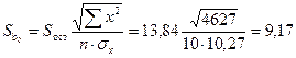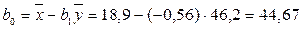 Точка пересечения (18,4;46,9). 7) Стандартные ошибки коэффициентов регрессии b0 и b1 Таблица 3 – Вспомогательные расчеты