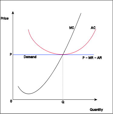 - ни у одной из фирм нет стимулов для вступления в отрасль или выхода из бизнеса, т.к. все действующие фирмы получают нулевую экономическую прибыль.