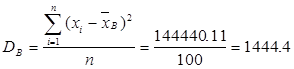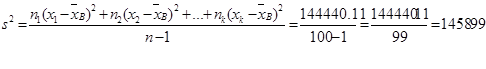 2.5 Определение моды Модой называют варианту с наибольшей частотой повторений. Из таблицы 2 находим, что наибольшую частоту n =3имеют варианты x = -731, x = -703,x = -701,x = -700,x = -697, x = -689,x = -686, x = -681, x = -667. 2.6 Определение медианы Если количество вариант число четное, то медиана вычисляется по формуле: МВ =( xk + xk +1 )/2 (2.5.) где xk – пятидесятый член вариационного ряда; x k+1 – пятьдесят первый член вариационного ряда; n – Количество вариант и n =2* k МВ =( xk + xk +1 )/2=(-689–689)/2= -689 2.7 Расчет коэффициента вариации Расчет коэффициента вариации проведем по формуле: