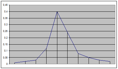 По таб. 3 строим гистограмму относительных частот (рис. 1). Полигон получаем соединением вершин столбцов гистограммы. (рис. 1) Полигон получаем соединением вершин столбцов гистограммы.