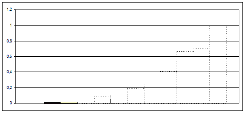 где nx – число вариант меньших х ; n – объем выборки. По формуле (4.1) построим эмпирическую функцию распределения.