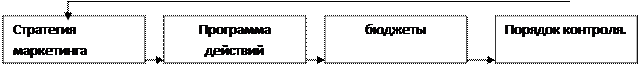 Рис. 4 "Составляющие плана маркетинга". Сводка контрольных показателей. В самом начале плана должна идти краткая сводка основных целей и рекомендаций, о которой пойдет речь в плане. Сводка контрольных показателей помогает высшему руководству быстро принять основную направленность плана. За сводкой следует поместить оглавление плана. Текущая маркетинговая ситуация. В первом основном разделе плана дается описание характера целевого рынка и положения фирмы на этом рынке. Составитель плана описывает рынок с точки зрения его величины, основных сегментов, нужд заказчиков и специфических факторов среды, делает обзор основных товаров, перечисляет конкурентов и указывает канал распределения. Опасности и возможности. Этот раздел заставляет руководителей взглянуть на перспективу и представить опасности и возможности, которые могут возникнуть перед товаром. Цель всего этого заставить руководство предвидеть важные события, которые могут сильно сказаться на фирме. Управляющие должны перечислить максимально возможное число опасностей и возможностей, которые они могут себе представить. Опасность - осложнение, возникающее в связи с неблагоприятной тенденцией или событием, которое может привести к подрыву живучести товара или его гибели. Возможность - привлекательное направление маркетинговых усилий, на которых фирма может добиться конкурентных преимуществ. Задачи и проблемы. Изучив связанные с товаром опасности и возможности, управляющий в состоянии поставить задачи и очертить круг возникающих при этом проблем. Задачи должны быть сформулированы в виде целей, которые фирма стремится достичь за период действия плана. Стратегия маркетинга. В этом разделе плана управляющий излагает широкий маркетинговый подход к решению поставленных задач. Стратегия маркетинга, - рациональное, логическое построение, руководствуясь которыми организационная единица рассчитывает решить свои маркетинговые задачи. Она включает в себя конкретные стратегии по целевым рынкам, комплексу маркетинга и уровню затрат на маркетинг. Целевые рынки. Стратегия маркетинга должна точно назвать сегменты рынка, на которых фирма сосредоточит свои основные усилия. Фирма должна сконцентрировать свои усилия на сегментах, которые она может обслужить лучше всего с конкурентной точки зрения. Комплекс маркетинга. Управляющий должен в общих чертах изложить конкретные стратегии в отношении этих элементов комплекса маркетинга. Каждую стратегию необходимо обосновать с точки зрения того, каким образом она учитывает опасности, возможности и ключевые проблемы. Уровень затрат. Одновременно управляющий должен указать размеры бюджета маркетинга. Программ действий. Стратегии маркетинга необходимо превратить в конкретные программы действий, дающие ответы на вопросы: что будет сделано, когда это будет сделано, кто это будет делать, сколько это будет стоить? Бюджеты. План мероприятий позволяет управляющему разработать соответствующий бюджет, являющийся, по сути дела, прогнозом прибыли и убытков. В графе "Поступления" дается прогноз относительно числа и средней цены-нетто товарных единиц. Которые будут проданы. В графе "Расходы" указываются издержки производства, товародвижения и маркетинга. Их разность дает сумму ожидаемой прибыли. Высшее руководство рассматривает 