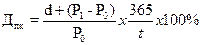 (6) где di —годовые дивидендные выплаты в году; Р0 —цена приобретения акции; Р —рыночная цена акции в году t ; п —число лет владения акцией; i —1, 2, 3 ... — год владения акцией. Полная доходность от краткосрочных операций (Дпк ) определяется по формуле: