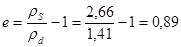 где ρS – плотность частиц грунта, г/см3 ; ρd – плотность грунта в сухом состоянии, г/см3 .