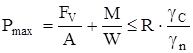 где FV – сила, нормальная к подошве фундамента, из таблицы 2.2, кН; А – площадь подошвы фундамента, м2 ; R – расчетное сопротивление основания, кПа; γn – коэффициент надежности, равный 1,4; б) для максимального давления подошвы фундамента на основание, кПа
