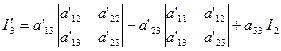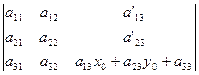 Вычитая из последней строки этого определителя первую строку, умноженную на х0 , и вторую, умноженную на у0 (х0 и у0 — координаты нового начала О'), и используя при этом выражения для а’13 и а’23 из формул параллельного переноса