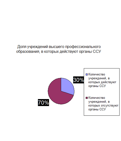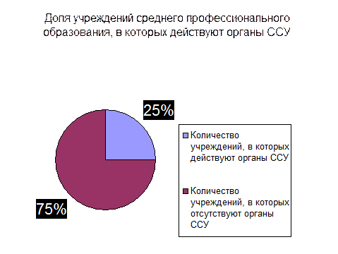 Разнообразие форм молодежного парламентского движения демонстрирует, что в каждом регионе, в каждом муниципальном образовании создаваемый представительный молодежный орган получает тот статус, который восполняет ту или иную нишу в общественной составляющей молодежной политики региона, в наибольшей степени отражает специфику молодежного населения по национальному, демографическому, половому признакам, по занятости в различных сферах производства, по месту проживания и т.д. Важным фактором развития демократических форм управления в системе высшего и среднего профессионального образования и значимым элементом самореализации и волеизъявления студенчества, как наиболее активной части молодёжи, является студенческое самоуправление. Сегодня органы студенческого самоуправления существуют в каждом третьем учреждении высшего и каждом четвертом учреждении среднего профессионального образования.