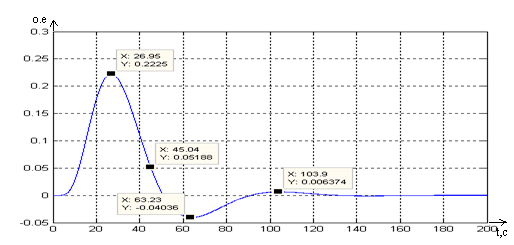 Переходной процесс в замкнутой системе, с регулятором настроенным частотным методом: