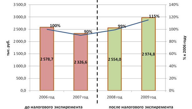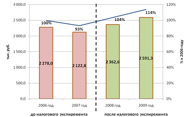 Рис. 2. Динамика «чистых» поступлений ЕНВД в бюджет Черемховского района По существу выводы, полученные на основании анализа «чистых» поступлений налога в бюджет, отличаются от полученных ранее лишь тем, что уровень поступлений налога 2006 года был достигнут уже в самом начале эксперимента, т. е. в 2008 году. При оценке результатов эксперимента в Черемховском районе важно учитывать тот факт, что с 1 января 2009 г. от ЕНВД были освобождены налогоплательщики, применяющие систему налогообложения в виде единого сельскохозяйственного налога[8] , а на платежеспособности остальных налогоплательщиков существенным образом сказался мировой финансовый кризис. Таким образом, и без того принесший бюджету 15%-й прирост поступлений ЕНВД эксперимент сeteris paribus[9] мог иметь более ошеломляющие результаты. Причина успеха налогового эксперимента в отдельно взятом муниципальном образовании и его провал в США кроется, на наш взгляд, в масштабе. Ввиду значительной инертности крупнейшей мировой экономики результаты налогового эксперимента в США не могли проявиться мгновенно, поэтому в первые два года имел место обратный эффект, выразившийся в снижении совокупных налоговых сборов [7]. В рамках же несравнимо малой экономики Черемховского муниципального района снижение фискальной нагрузки принесло свои плоды уже на следующий год. Видится, что применение идей теории экономики предложения в масштабах государства требует даже не тактического, а стратегического подхода и железного терпения от руководителей страны. Результаты же «местного» налогового эксперимента, на наш взгляд, еще раз подтверждают перспективность теории Лаффера в исследовании столь сложного социально-экономического явления, каким является проблема оптимального налогообложения. Поэтому нельзя не согласиться с утверждением Б. Босворта, что фискальная составляющая теории экономики предложения заслуживает большего внимания, чем предложил Лаффер и его коллеги[10] . Литература 1. Wannisky J. Taxes, Revenues and the Laffer Curve. URL: http://www.polyconomies.com/index.html (дата обращения: 15.01.08). 2. Becsi Z. The Shifty Laffer Curve [Электронный ресурс] // Federal Reserve Bank of Atlanta: Economic Review. 2000. Third Quarter. URL: www.frbatlanta.org/filelegacydocs/becsi.pdf (дата обращения: 30.07.2010). 3.О внесении изменений в Решение Думы от 28.09.2005 № 109 «Об установлении единого налога на вмененный доход для отдельных видов деятельности»: решение Думы Черемховского районного муниципального образования от 28 нояб. 2007 г. № 298. URL: http://www.r38.nalog.ru/index.php?topic=ches_rnz38 (дата обращения: 30.07.2010). 4. Балацкий Е.В. Эффективность фискальной политики государства [Электронный ресурс] // Проблемы прогнозирования. 2000. № 5. URL: http://www.budgetrf.ru/Publications/Magazines/Pp/2000/2000-05balatskiy/2000-05balatskiy000.htm (дата обращения: 30.07.2010). 5. Балацкий Е.В. Анализ влияния налоговой нагрузки на экономический рост с помощью производственно-институциональных функций [Электронный ресурс] // Проблемы прогнозирования. 2003. № 2. URL: http://www.budgetrf.ru/Publications/Magazines/Pp/2003/2003-02balatsky/2003-02balatsky000.htm (дата обращения: 30.07.2010). 6. Agell J., Persson M. On the analytics of the dynamic Laffer curve // Journal of Monetary Economics. 2001. Vol. 48. Р. 397—414. 7. Niskanen W.A., Moore S. Supply Tax Cuts and the Truth about the Reagan Economic Record [Электронный ресурс] // Cato Policy Analysis. 1996. October 22. № 261. URL: http://www.cato.org/pub_display.php?pub_id=1120 (дата обращения: 30.07.2010). Об авторе: В. Е. Подковыров, начальник отдела по прогнозированию доходов финансового управления администрации Черемховского районного муниципального образования va