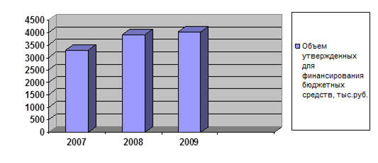Рисунок 1 - Динамика утвержденных для финансирования бюджетных средств за период с 2007 по 2009 гг. (тыс. руб)