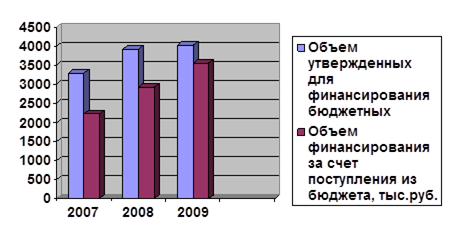 Таблица 2.2 - Динамика объема финансирования за счет поступлений из бюджета за период с 2007 по 2009 гг. (тыс. руб)