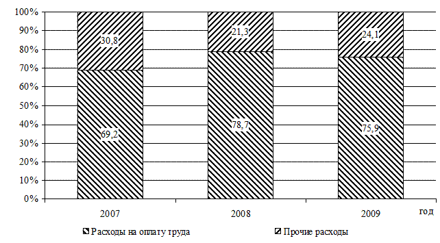 Анализ бюджета показал, что на протяжении 2007-2008 гг. выделенные средства были освоены примерно на 80%, в 2009 году средства скорее всего так же будут недоосвоены, т.е. необходимо провести дополнительный анализ и в последующие годы при составлении расходной сметы более реально оценивать сумму средств, необходимых для функционирования управления по размещению госзаказа Липецкой области.