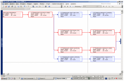 Рис.4. Сітьовий графік проект (загальний вид та критичні шляхи)
