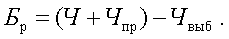 где - С возникновением предприятий разных форм хозяйствования возросла интенсивность движения рабочей силы. Под движением рабочей силы понимается изменение списочной численности работников вследствие их увольнения или приема на работу. Рассчитываются следующие абсолютные показатели: - оборот по приему (число зачисленных работников в текущий период); - оборот по увольнению (число работников, ушедших с предприятия по каким-либо причинам); - общий оборот рабочей силы (сумма оборотов по приему и выбытию). С помощью этих абсолютных показателей строятся балансы ресурсов рабочей силы (Бр ), которые определяются как сумма численности списочных работников на начало отчетного периода (Ч) и численности принятых за отчетный период (Чпр ) без численности выбывших за отчетный период (Чвыб ):