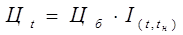 где Цб - базисная цена продукции или ресурса; I ( t ,tн )- коэффициент (индекс) изменения цен продукции или ресурсов соответствующей группы в конце t- го шага по отношению к начальному моменту расчёта (в котором известны цены). Расчётная цена определяется путём умножения базисной цены на дефлятор, соответствующий индексу общей инфляции. Расчётные цены используются для определения интегрального эффекта (чистого дохода), когда текущие значения затрат и результатов принимаются в прогнозных ценах. Это необходимо для обеспечения сравнимости результатов, получаемых при различных уровнях инфляции. Базисные, прогнозные и расчётные цены могут выражаться в рублях или устойчивой иностранной валюте. Достаточно часто предприятиям необходимо сопоставлять затраты и доходы, возникающие в разное время. Естественно, что затраты на создание и реализацию инвестиционного проекта растягиваются во времени, а поступление доходов начинается обычно после осуществления всех затрат. Поэтому при анализе инвестиционного проекта необходимо учитывать такое понятие, как стоимость денег во времени, другими словами, рубль, полученный раньше, стоит дороже, чем рубль, полученный спустя какое-то время. В экономическом анализе используют специальный метод для измерения текущей и будущей стоимости в одном масштабе, этот метод называется методом дисконтирования. Дисконтирование — это приведение друг к другу потоков доходов и затрат на основе ставки дисконта с целью получения текущей (настоящей) стоимости будущих доходов и затрат. Для приведения разновременных затрат, результатов и эффектов, используется норма дисконта ( Е), равная приемлемой для инвестора норме дохода на капитал. Дисконтирование является процессом, обратным начислению сложного процента. Начислением сложного процента называется процесс роста основной суммы вложений за счет накопления процентов, при этом первоначальная сумма вложений называется текущей стоимостью, полученная в результате начисления сумма — будущей стоимостью. Будущая стоимость рассчитывается по формуле: