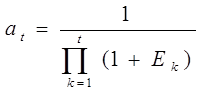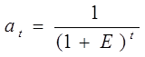 Где t – номер шага расчёта ( t = 0,1,2,…, T), а T – горизонт расчёта. Если же норма дисконта меняется во времени и на t - м шаге равна E , то коэффициент дисконтирования равен: