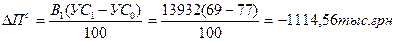 где В’ – выручка от реализации отчетного периода в сопоставимых ценах; В1 – выручка от реализации отчетного периода; У – индекс роста цен, У=1,15. ΔВц – изменение выручки за счет изменения цен: