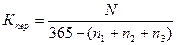 где N – количество рабочих дней в году; n1 – количество выходных и праздничных дней в году; n2 – количество отпускных дней в году; n3 – прочие невыходы на работу.
