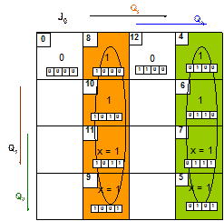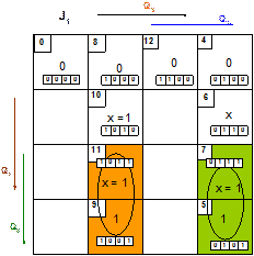 · С помощью карт Карно производим минимизацию функций входов для каждого триггера:
