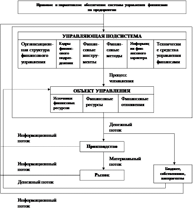 Разграничение текущей и инвестиционной деятельности необходимо для обеспечения эффективного контроля за использованием финансовых ресурсов и предупреждения иммобилизации (отвлечения) оборотных средств в капитальные затраты , что может подорвать текущее финансирование предприятия. По степени конкретизации объектов и характеру решаемых задач в рамках финансовой политики предприятия можно выделить уровни управления финансами: краткосрочная финансовая политика; стратегия текущего финансирования и тактические задачи (табл. 1.2) [4] . Конкретные формы и методы реализации задач управления финансами определяются финансовой политикой предприятия. Ее основные элементы: учетная политика; кредитная политика; политика управления денежными средствами; политика в отношении управления издержками; дивидендная политика. Свою учетную политику предприятие должно строить в соответствии с национальными стандартами бухгалтерского учета. При определении кредитной политики решается вопрос об обеспеченности оборотными средствами, в частности, размер собственных оборотных средств и потребности в заемных средствах (коммерческих, краткосрочных, банковских кредитах). В случае необходимости привлечения долгосрочного кредита изучают структуру капитала и финансовую устойчивость предприятия.[5] В процессе реализации своих главных целей финансовый менеджмент направлен на решение следующих задач: - обеспечение формирования необходимого объема финансовых ресурсов в соответствии с задачами развития предпринимательской фирмы в предстоящем периоде; - обеспечение эффективного использования финансовых ресурсов фирмы по всем основным направлениям ее деятельности; - обеспечение эффективного управления денежным оборотом фирмы; - обеспечение необходимого уровня ликвидности оборотных активов фирмы; - обеспечение максимизации прибыли фирмы в предстоящем периоде; - обеспечение высокого уровня финансовой устойчивости и платежеспособности фирмы на всех этапах ее развития. Все эти задачи взаимосвязаны и взаимообусловлены. Поэтому в процессе финансового управления отдельные задачи должны быть взаимно оптимизированы для наиболее эффективного результата при решении его основной цели. Управление финансами осуществляется с помощью финансового механизма, который состоит из двух подсистем: 1. Управляющая подсистема. Это субъект управления. Управляющей подсистемой являются финансовая служба, финансовый отдел и финансовые менеджеры. 2. Управляемая подсистема. Это объект управления. Управляемая подсистема включает в себя: - финансовые отношения (взаимоотношения с потребителями, поставщиками); - источники финансовых ресурсов; - финансовые ресурсы организаций; - денежный оборот предприятия.[6] В качестве основного объекта управления в финансах выступает денежный оборот фирмы, как непрерывный поток денежных выплат и поступлений, проходящий через расчетный и другие счета фирмы. Вывод: проанализированы основные положения финансовой политики предприятия, как основы финансовой стабилизации предприятия. Предприятием выбирается одна из двух форм управления финансами – реактивная или на основе разработки финансовой политики. Показано, что Реактивная форма управления финансами означает, что управленческие решения принимаются как реакция на те