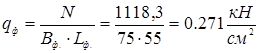 Размеры плиты назначаем конструктивно, принимая В = 750 мм, С = 550 мм. Фактическая площадь плиты 75х55=4125 см2 , что больше требуемой, равной 593,2 см2 . Фактическое давление фундамента на плиту
