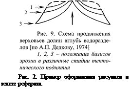 Порядок начисления баллов. Написание и защита реферата оцениваются 12 баллами, которые добавляются к баллам текущей успеваемости студента. Из общей суммы 6 баллов начисляются за текст реферата (по 2 балла за полноту раскрытия темы, стиль изложения и качество оформления), 6 баллов за защиту (3 балла – за качество доклада, 2 балла – за верность и полноту ответов на вопросы, 1 балл – за активность во время «чужих» защит). Приложение 1 Рекомендуемая литература:Дедков А.П. Геоморфология на пороге нового века: пройденные этапы и современные тенденции // Геоморфология, 2001, № 1. – С. 3 – 17. Дедков А.П. Общая геоморфология. Ч. II. Эндогенные процессы и рельеф. Казань: Унипресс. 2001. – 116 с. Дедков А.П. Общая геоморфология. Ч. I. Общие вопросы. Казань: Изд-во Казанск. ун-та, 2003. – 116 с. Динамическая геоморфология / Под ред. Г.С. Ананьева, Ю.Г. Симонова, А.И. Спиридонова. М.: Изд-во Московск. ун-та, 1992. – 448 с. Костенко Н.Г. Геоморфология. М.: Изд-во Московск. ун-та, 1999. – 384 с. Леонтьев O.K., Рычагов Г.И. Общая геоморфология. М.: Высшая школа. 1988. – 320 с. Николаев Н.И. Новейшая тектоника и геодинамика литосферы. М.: Недра, 1987. – 316 с. Панов Д.Г. Общая геоморфология. М.: Высшая школа, 1966. – 428 с. Райс Р.Дж. Основы геоморфологии. М.: Прогресс, 1980. – 576 с. Щукин И.С. Общая геоморфология. М.: Изд-во Московск. ун-та, 1960. Т. 1. – 620 с. 1964. Т. 2. – 564 с. 1974. Т. 3. – 384 с. |