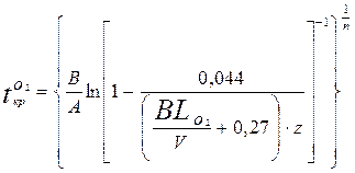 Q– Низшая теплота сгорания, равна 20,71 МДж/кг; Ср- удельная изобарная теплоемкость газа, равна 0,001068 МДж/кг/К; φ– коэффициент теплопотерь, равен 0,6; ή– коэффициент полноты горения, равен 0,95; to– начальная температура воздуха в помещении, ровна 37 n– показатель степени, учитывающий изменение массы выгорающего материала во времени, равен 3; V– Свободный объем помещения, м3, А – размерный параметр, учитывающий удельную массовую скорость выгорания горючего материала и площадь пожара , кг/с