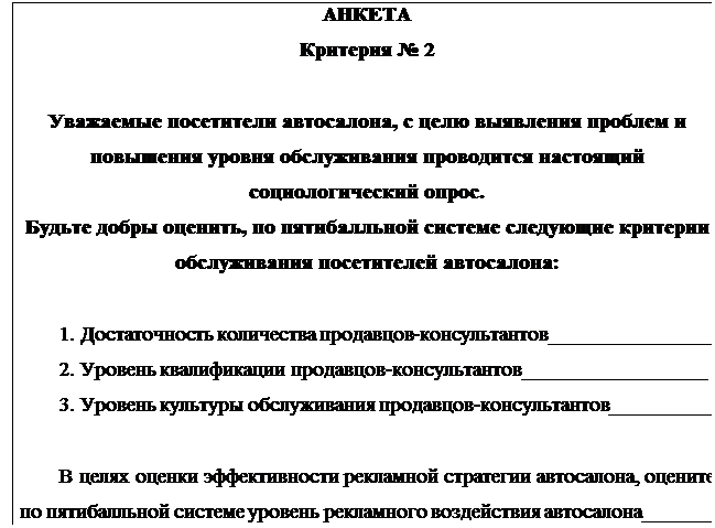 Приложение 1 Результаты анкетирования посетителей автосалонов по критерию № 2 «Численность, квалификация и приветливость продавцов-консультантов»