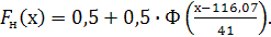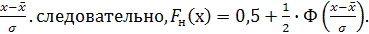 г) коэффициент вариации: д) для кривой нормального распределения характерно симметричное распределение результатов измерений случайной величины относительно математического ожидания. Проверка наличия этой особенности при распределении случайной величины осуществляется путем расчета асимметрии: В рассматриваемом примере А=0,439. Значение асимметрии оказалось положительным, что свидетельствует о положительной или правосторонней асимметрии исследуемого распределения, относительно нормального распределения. е) судить о характере сплюснутости кривой распределения, по сравнению с кривой нормального распределения, позволяет эксцесс: В рассматриваемом примере Е=0,159. Полученное значение Функция распределения Использование на практике выражения (А7) вызывает затруднения, поэтому преобразуем его – введем новую переменную Применяя свойство определенных интегралов о разбиении отрезка интегрирования, полученный интеграл преобразуем: В выражении (А9) первое слагаемое Производная функции распределения случайной величины является плотностью вероятности Плотность вероятности случайной величины определяется равенством где Так как исследуемое распределение является распределением с равными интервалами (значение