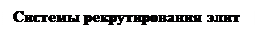Существуют две основные системы рекрутирования элит: гильдий и антрепренерская (предпринимательская). В чистом виде они встречаются довольно редко. Антрепренерская система преобладает в демократических государствах, система гильдий — в странах административного социализма, хотя ее элементы широко распространены и на Западе, особенно в экономике и государственно-административной сфере. Каждая из этих систем имеет свои специфические черты. Так, для системы гильдий характерны: 1) закрытость, отбор претендентов на более высокие посты главным образом из нижестоящих слоев самой элиты, медленный, постепенный путь наверх. Примером здесь служит сложная чиновническая лестница, предполагающая постепенное продвижение по многочисленным ступенькам служебной иерархии; 2) высокая степень институциализации процесса отбора, наличие многочисленных институциональных фильтров — формальных требований для занятия должностей. Это могут быть партийность, возраст, стаж работы, образование, характеристика руководства и т.д.; 3) небольшой, относительно закрытый круг селектората. Как правило, в него входят лишь члены вышестоящего руководящего органа или один первый руководитель — глава правительства, фирмы и т.п.; 4) подбор и назначение кадров узким кругом руководителей, отсутствие открытой конкуренции; 5) тенденция к воспроизводству существующего типа элиты. По существу, эта черта вытекает из предыдущих — наличия многочисленных формальных требований, назначения на должность высшим руководством, а также длительного пребывания претендента в рядах данной организации. Антрепренерская система рекрутирования элит во многом противоположна системе гильдий. Ее отличают: 1) открытость, широкие возможности для представителей любых общественных групп претендовать на занятие лидирующих позиций; 2) небольшое число формальных требований, институциональных фильтров; 3) широкий круг селектората, который может включать всех избирателей страны; 4) высокая конкурентность отбора, острота соперничества за занятие руководящих постов; 5) изменчивость состава элиты, первостепенная значимость для этого личностных качеств, индивидуальной активности, умения найти поддержку широкой аудитории, увлечь ее привлекательными идеями и программами. Эта система больше ценит выдающихся людей. Она открыта для молодых лидеров и нововведений. В то же время определенными недостатками ее использования являются относительно большая вероятность риска и непрофессионализма в политике, сравнительно слабая предсказуемость политики, склонность лидеров к чрезмерному увлечению внешним эффектом. В целом же, как показывает практика, антрепренерская система рекрутирования элит хорошо приспособлена к динамизму современной жизни. Система гильдий также имеет свои плюсы и минусы. К числу ее сильных сторон относятся уравновешенность решений, меньшая степень риска при их принятии и меньшая вероятность внутренних конфликтов, большая предсказуемость политики. Главные ценности этой системы — консенсус, гармония и преемственность. В то же время система гильдий склонна к бюрократизации, организационной рутине, консерватизму, произволу селектората и подмене формальных критериев отбора неформальными. Она порождает массовый конформизм и затрудняет исправление ошибок и устранен