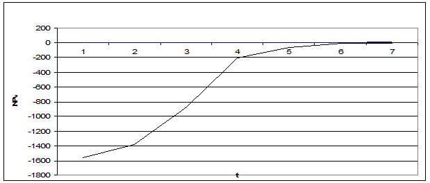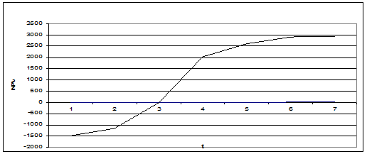На основании этой формулы и 2-го пункта табл. 2.4.3.1 строим диаграмму, на которой отражено, в каком году окупиться проект при внутренней норме доходности 25%. Диаграмма представлена на рис.2.4.3.1.