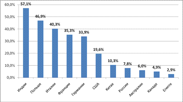 Рис. 1. Крупнейшие страны мира по размерам площади пашни.[2]