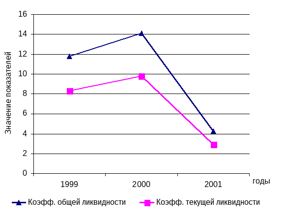График изменения коэффициентов рентабельности за период 1999-2001 гг Показатели ликвидности