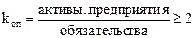 Кп 1=(21028+14014+84342)/41900=2,85 >=2 Кп 2=(117538+115826+1014)/52756,64=4,44 >=2 Различные показатели ликвидности дают не только разностороннюю характеристику платежеспособности предприятия при разной степени учета ликвидных активов, но и отвечают интересам различных внешних пользователей аналитической информации. Так, для поставщиков товаров наиболее интересен коэффициент абсолютной ликвидности. Банк, кредитующий данное предприятие, больше внимания уделяет коэффициенту текущей ликвидности. Потенциальные и действительные акционеры предприятия в большей мере оценивают его платежеспособность по коэффициенту покрытия. · Коэффициент общей платежеспособности определяет способность покрыть все обязательства предприятия (краткосрочные и долгосрочные) всеми ее активами: