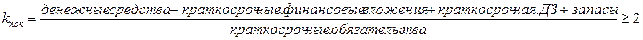 k тл1 =(128 03 + 0 + 28001 )/ ( 29 98 + 398 02 + 0 + 0) = 0,95 k тл 2 =( 11003 + 0 + 1001 )/ ( 2 5000 + 2 0602 + 0 + 0) = 0 ,26 k тл 3 =( 42503 + 0 + 25001 ) /(4999 + 109 6 0 8 + 0 + 0) = 0 ,59 - коэффициент покрытия (kпок) характеризует прогнозируемые платежные возможности при условии погашения краткосрочной дебиторской задолженности и реализации имеющихся запасов: