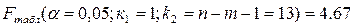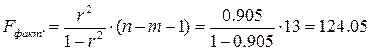Cвязь между y и факторами x 1 , x 3 характеризуется как тесная, т. к. значение индекса множественной корреляции близко к 1. Коэффициент множественной детерминации: R 2 yx 1 x 3 =(0.941)2 =0.886 Т. е. данная модель объясняет 88,6% вариации y , на долю неучтенных в модели факторов приходится 100-88,6=11,4% Оценим значимость полученного уравнения регрессии с помощью F -критерия Фишера: