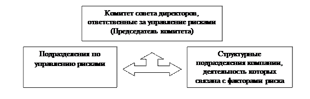 Рис.7. Структура системы управления рисками ЗАО «Александр» В данной структуре высшим уровнем управления является Комитет совета директоров, который утверждает порядок организации системы управления рисками; политику управления рисками; процедуры и регламенты управления рисками; допустимый уровень рисков; методики, регламентирующие порядок определения величины рисков, а также осуществляет контроль эффективности функционирования систем управления рисками, исполнения процедур и регламентов управления рисками. Второй уровень (исполнительный) – это подразделение по управлению рисками. Оно осуществляет разработку методик оценки рисков; учет и оценку текущих рисков и мониторинг новых рисков; разработку процедур управления рисками; ведение баз данных и агрегированной информации по рискам; расчет лимитов и мониторинг их соблюдения; предоставление руководству отчетности по рискам; расчет эффективности мероприятий по управлению рисками. И наконец, третий (оперативный) уровень – это структурные подразделения компании, деятельность которых связана с факторами риска. Они осуществляют: оперативный контроль за принимаемыми рисками; выявление факторов риска и участие в экспертной оценке риска; согласование методик оценки рисков соблюдение лимитов по рискам; разработку и выполнение мероприятий по управлению рисками. Необходимо понимать, что внедрение системы управления рисками не дает ежеминутного результата, она нацелена на долгосрочный характер и получение дополнительных конкурентных преимуществ в перспективе. Ниже представлена таблица, которая дает представление о преимуществах внедрения системы управления рисками ЗАО «Александр» Таблица 2.1 Управление рисками ЗАО «Александр» до и после внедрения системы управления рисками (СУР)»