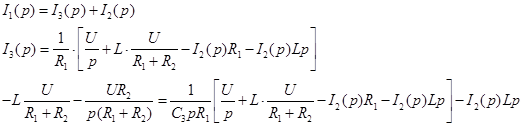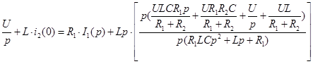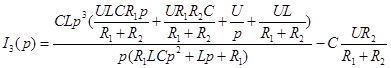 2) Находится изображение искомого тока. Операторная схема замещения содержит 3 источника в разных ветвях: основной и два дополнительных. Поэтому для нахождения изображения тока второй ветви воспользуемся законами Кирхгофа в операторной форме: