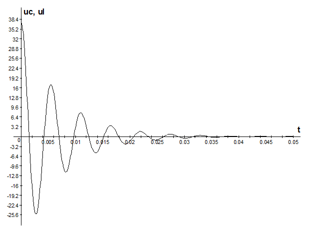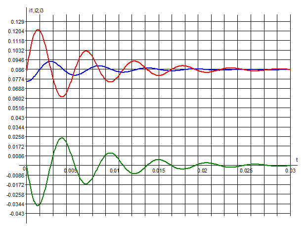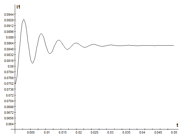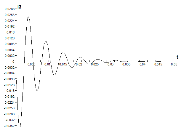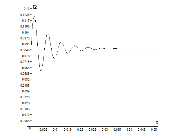 Решение системы дает: Искомое решение для напряжения на емкости принимает вид: Аналогичным образом находим решение для тока второй ветви:
