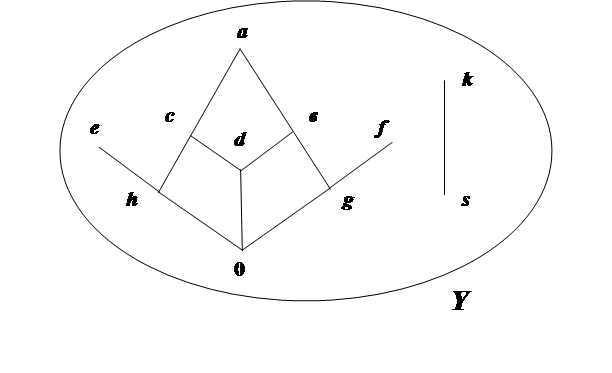 Приведем пример ЧУМ, у которого для любых элементов существует точная нижняя грань. inf{a ;в }=d , inf{a ;d }=d , inf{a ;0 }=0 , inf{a ;c }=0 , inf{a ;e }=0 , inf{в ;c }=e , inf{в ;e }=e , inf{в ;d }=d , inf{c ;e }=c , inf{c ;0 }=0 , inf{c ;d }=0 , inf{d ;e }=0 , inf{d ;0 }=0 , inf{e ;0 }=0 . Определение : Частично упорядоченное множество, в котором для любых двух элементов существует точная нижняя грань, называется полурешеткой . Пример 10. Приведем пример ЧУМ, которое не является полурешеткой. Пусть <