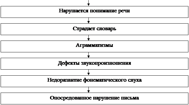 Речеслуховой анализатор осуществляет: 1) анализ звукового состава слова; 2) он преобразовывает звуки в фонемы; 3) осуществляет выделение последовательности звука в слове. На письме при акустико-фонематической дислалии первично идет недоразвитие фонематического слуха. С В процессе письма активно включаются еще глаз и рука, и тогда вопрос о взаимодействии слухового, зрительного, речедвигательного и двигательного компонентов приобретают особую важность. Как отмечает П. Л. Горфункель, некоторые исследователи склонялись к предположению о необязательности зрительного участия в письме, считая, что письмо грамотного человека опирается на способность слухового и речедвигательного представлений непосредственно включать двигательные представления, минуя зрительное звено. Но тем большую роль должно играть зрение в самом акте формирующегося письма. Нарушение зрительного анализатора ведет к зрительной предметной агнозии